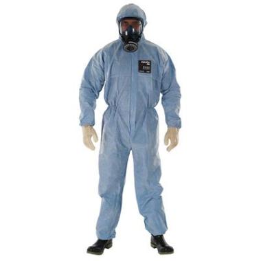De Ansell AlphaTec FR overall, model 111 is speciaal ontworpen om de drager te beschermen bij werkzaamheden met vloeistoffen en deeltjes onder lage druk. Deze overall biedt bescherming tegen lichte chemische vloeistofsprays zonder in te boeten op het beschermende vermogen in geval van een steekvlam. Het pak is gemaakt van Sontara/houtpulp/polyester behandeld met vlamvertragers voor een goede barrièrebescherming. De lichtblauwe overall beschermt tegen type 5 deeltjes en type 6 lichte vloeistofsprays.