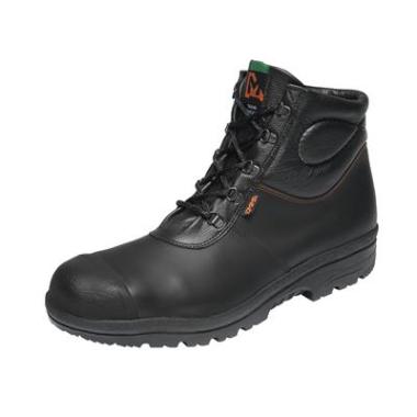 Deze zwarte hoge Emma Mitchel XL S3 veiligheidsschoen is vervaardigd uit volnerfleder en voorzien van een vetersluiting. De schoen beschikt over een stalen neus en tussenzool voor optimale bescherming. De rubber-overneus biedt extra bescherming tegen slijtage van het leer op de neus. De schoen is uitgerust met een volnerf nappaleder/splitlederen voering en een nitril rubberen loopzool met conisch profiel voor goede vuilafvoer.