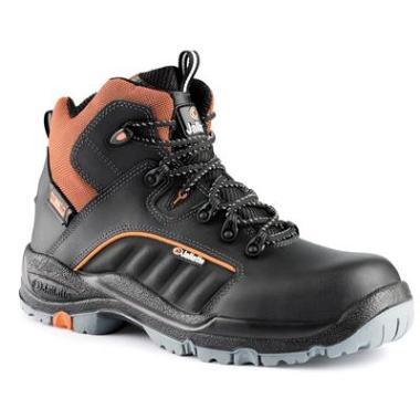 De Jallatte Jaldelevan X² is een hoogwaardige S3 veiligheidsschoen met een hoog model en vetersluiting. Deze metaalvrije veiligheidsschoen is vervaardigd uit waterafstotend volnerf leder en voorzien van een tussenzool en neus van 100% composiet. De schoen heeft een 3D-voering in drie lagen materiaal voor optimale vochtafvoer en is uitgerust met een gewatteerde enkelkraag voor extra comfort en bescherming van de achillespees. De zwart/oranje veiligheidsschoen voldoet aan de antislipnorm SRC.