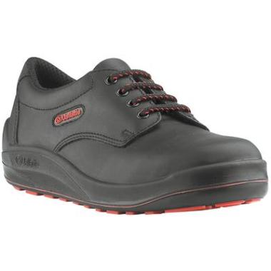 Deze zwarte Jallatte Jalscand veiligheidsschoen S3 is een laag model met vetersluiting, voorzien van een stalen neus en stalen tussenzool. De schoen is vervaardigd uit waterafstotend volnerf leder en beschikt over een geavanceerde 3D-voering die zorgt voor optimale vochtafvoer. Met zijn gewatteerde enkelkraag biedt de schoen extra comfort en bescherming voor de achillespees. De uitneembare antistatische inlegzool en de speciale Triftane zool in Softane/NBR zorgen voor stabiliteit en uitstekende schokabsorptie.