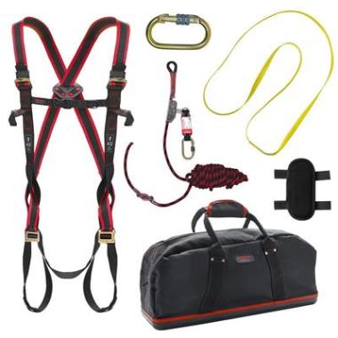 Deze complete veiligheidsset voor hellende daken is geschikt voor personen met een gewicht tot 140 kg inclusief uitrusting en een lengte tussen 160 en 200 cm. De set bevat een Fuji 3D harnas, Lucania rope Grab valstopapparaat met valdemper en lijn, Moco Sling ankerpunt van 120 cm, Macaulay stalen karabijnhaak, twee Moroto afneembare schouderpads en een Bisoke sporttas voor transport en opslag.